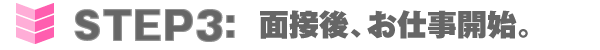 お申し込み頂きました内容を確認後、改めて担当者よりお仕事説明、面接日程についてご連絡差し上げます。